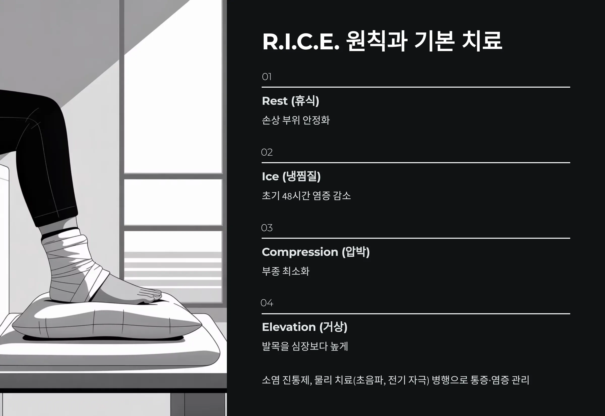 비수술적 발목 통증 치료의 최신 경향: R.I.C.E. 원칙과 기본 치료