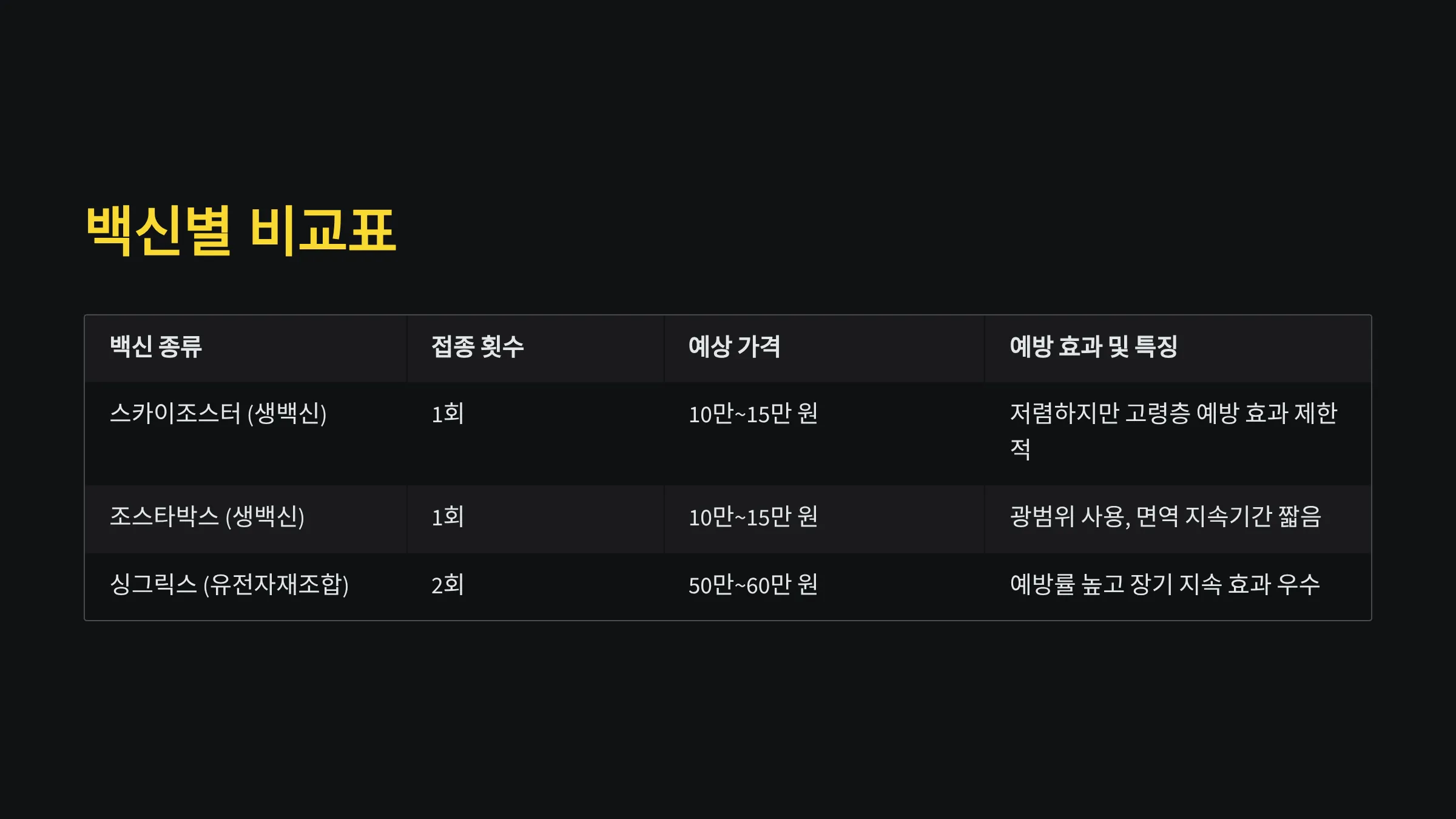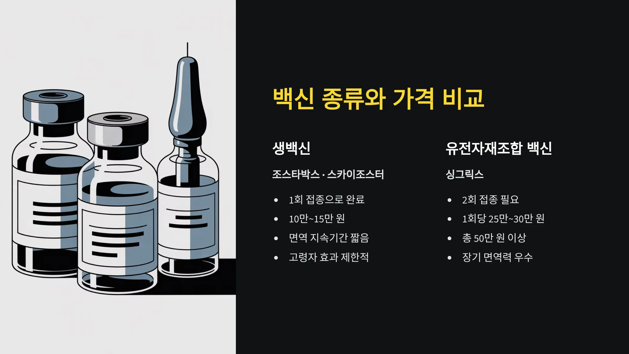 비교표: 백신별 장단점과 가격