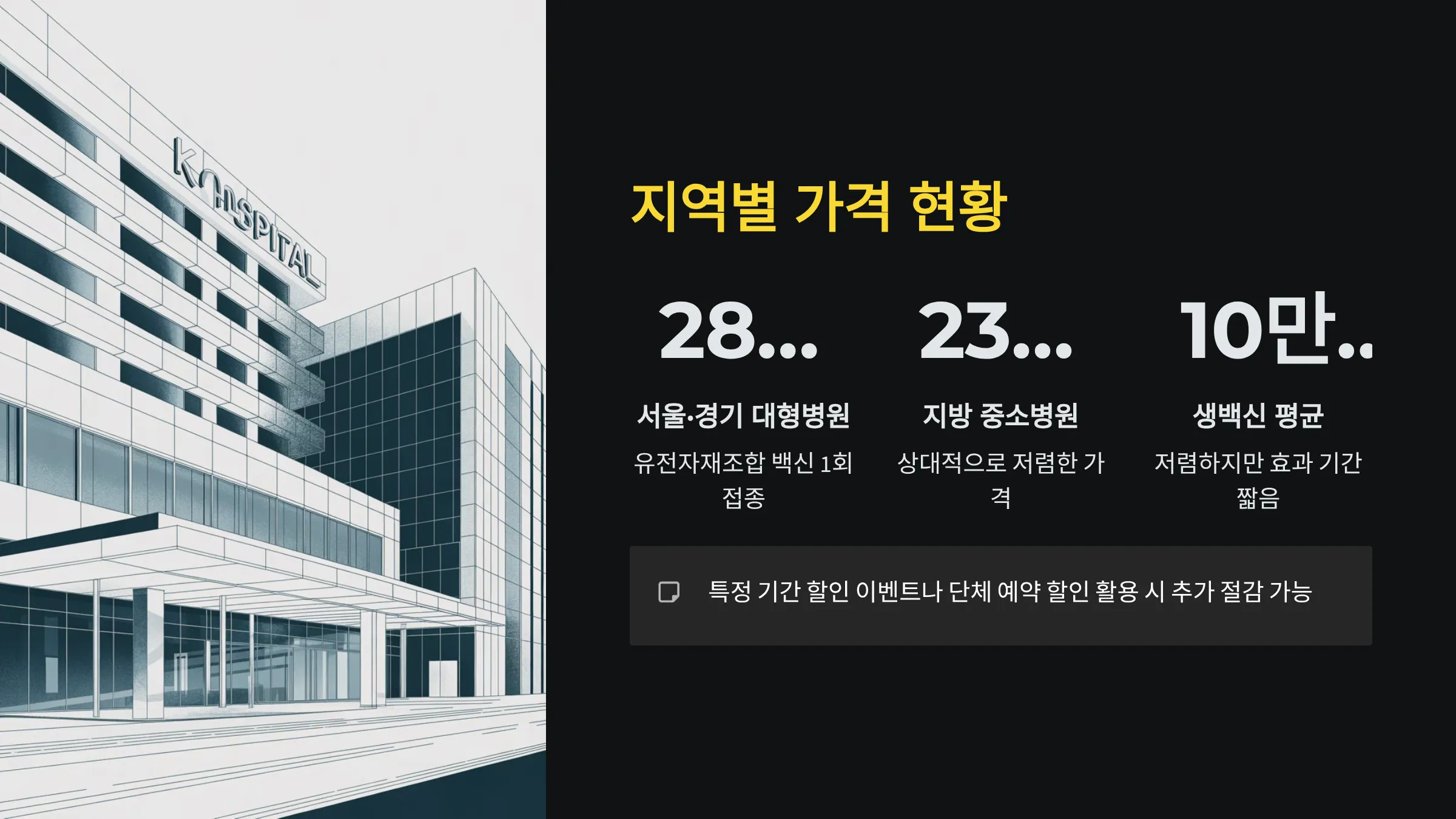 대상포진 예방접종 가격은 병원 규모, 지역, 백신 종류, 접종 방식에 따라 차이가 크다. 서울, 경기권 대형병원은 주로 유전자재조합 백신을 중심으로 1회 28만 원 내외로 책정되어 있고, 지방 중소 병원은 23만 원 수준으로 상대적으로 저렴하다.