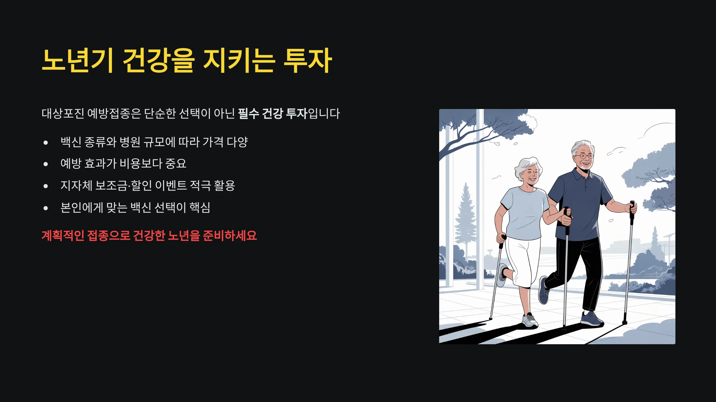 | 스카이조스터 (생백신) | 1회 | 10만~15만 원 | 저렴하지만 고령층 예방 효과 제한적 |