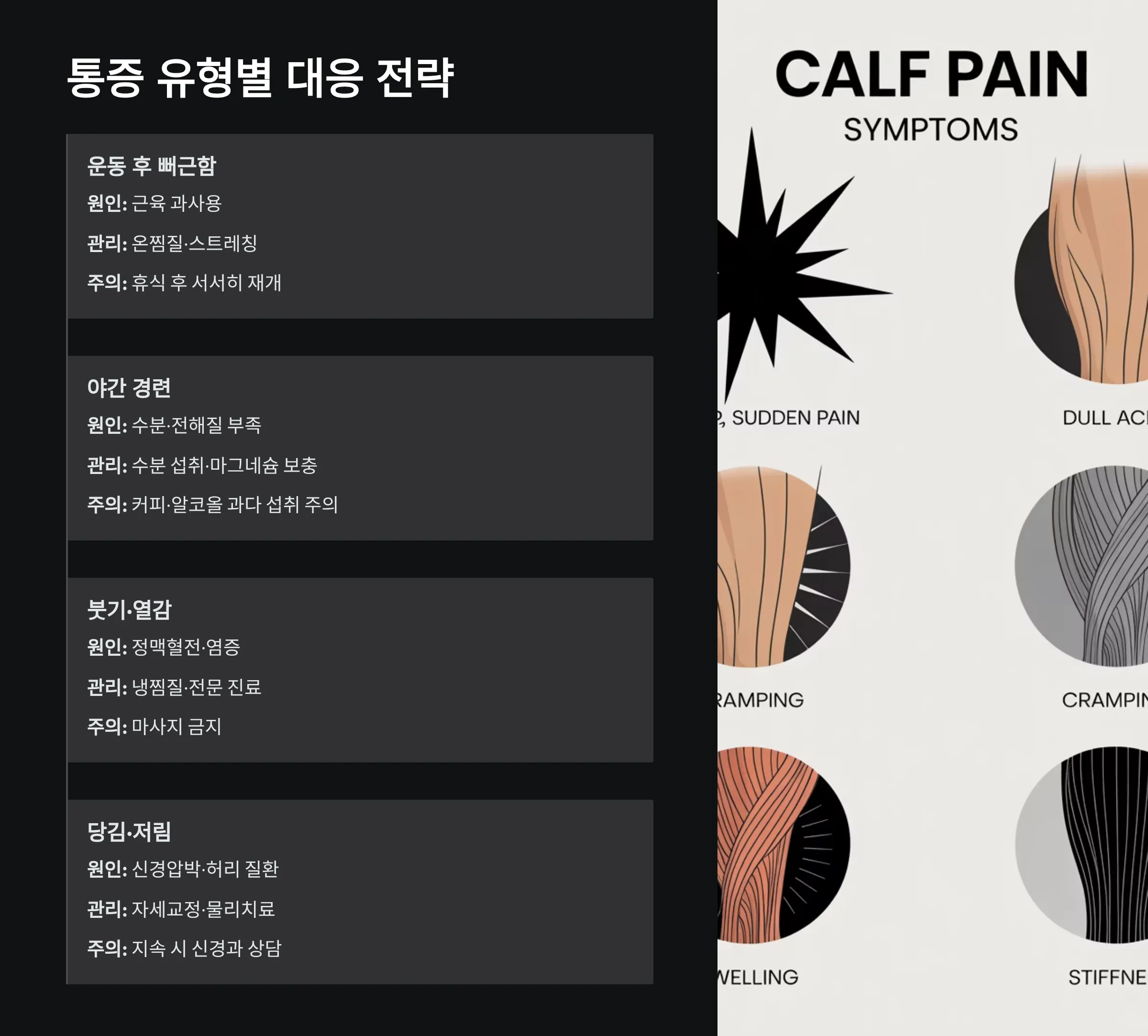 종아리 통증 형태에 따른 대응 전략