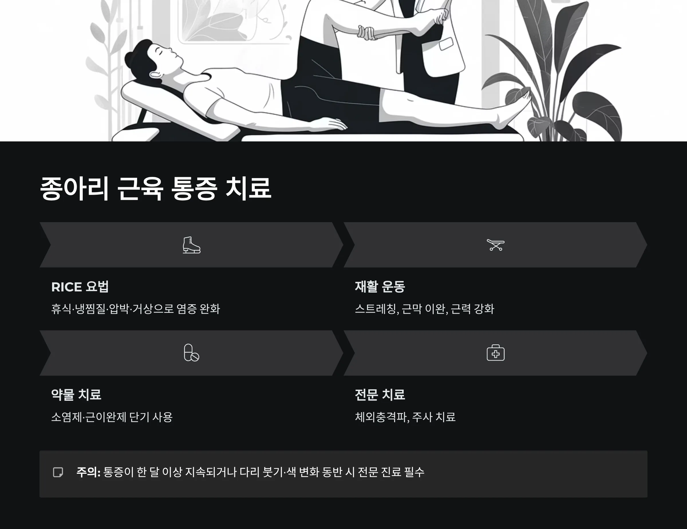 종아리 근육 통증 치료법 비교