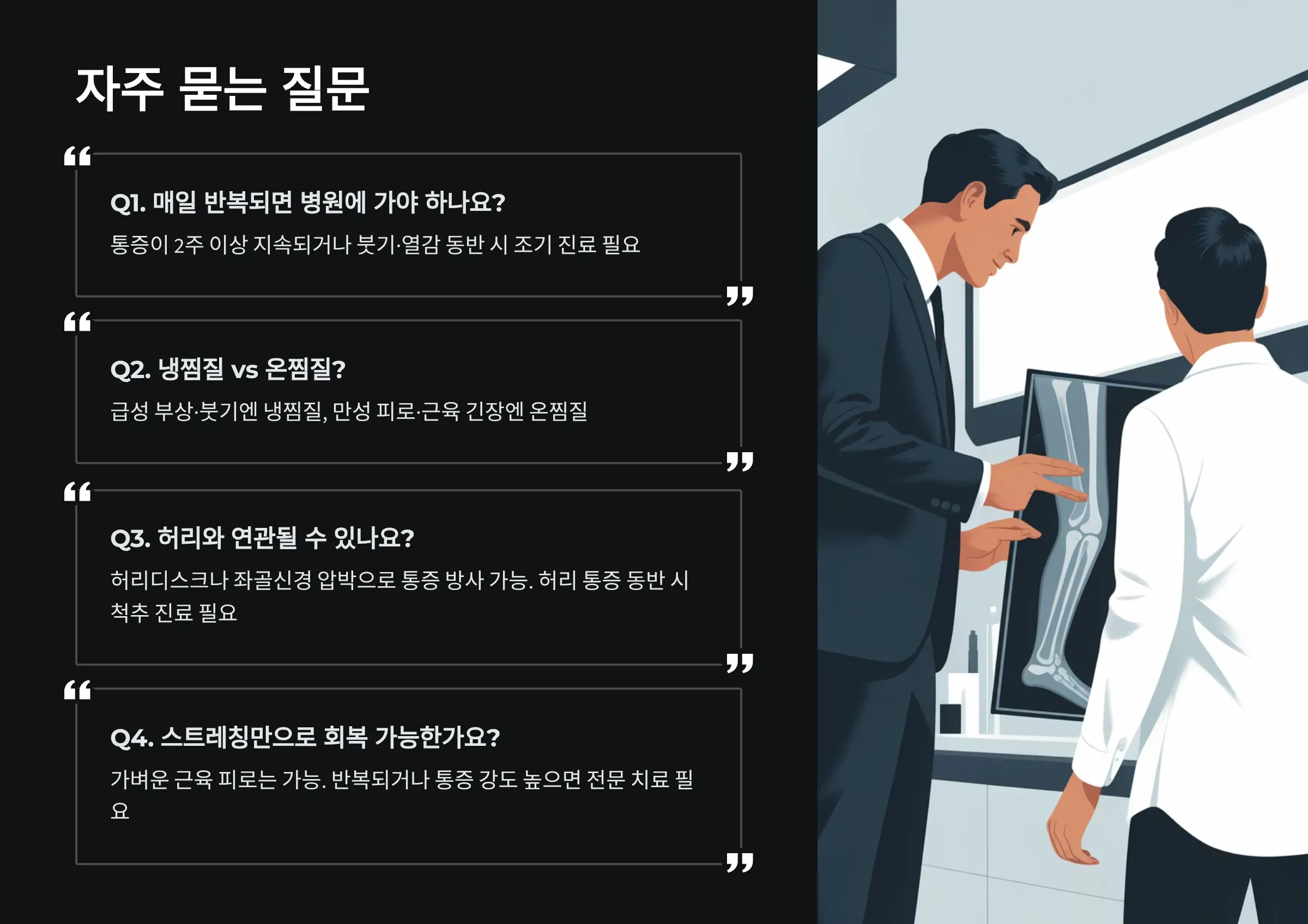 Q1. 종아리 근육 통증이 매일 반복되면 병원에 가야 하나요?