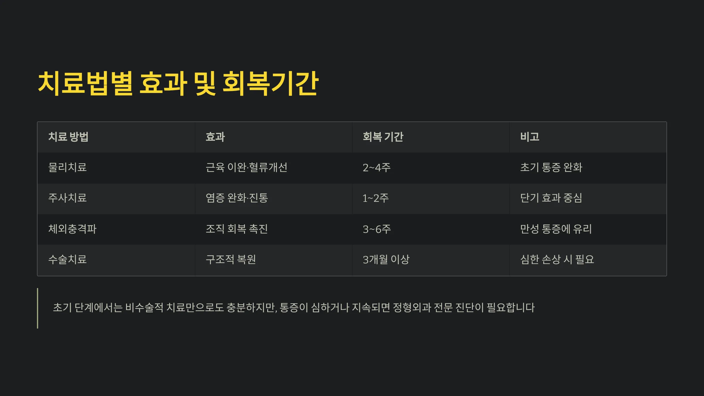 치료 방법 효과 회복 기간 비고