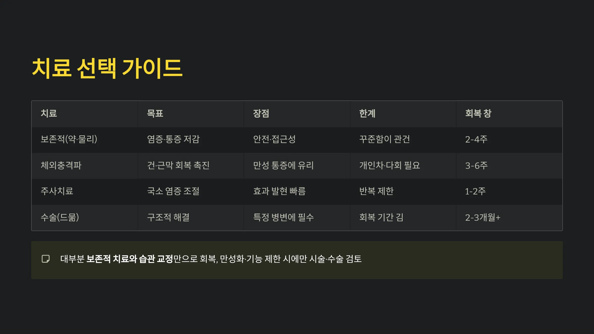 보존적(약·물리) 염증·통증 저감 안전·접근성 꾸준함이 관건 2~4주