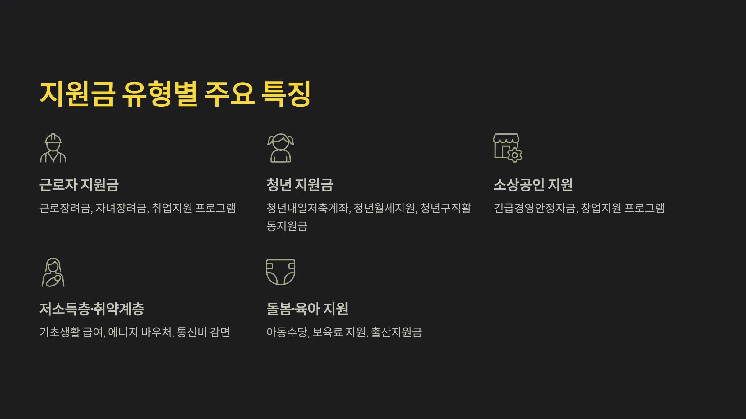 4) 개별 지원금 상세 설명·자격 요건·지원 금액 확인
