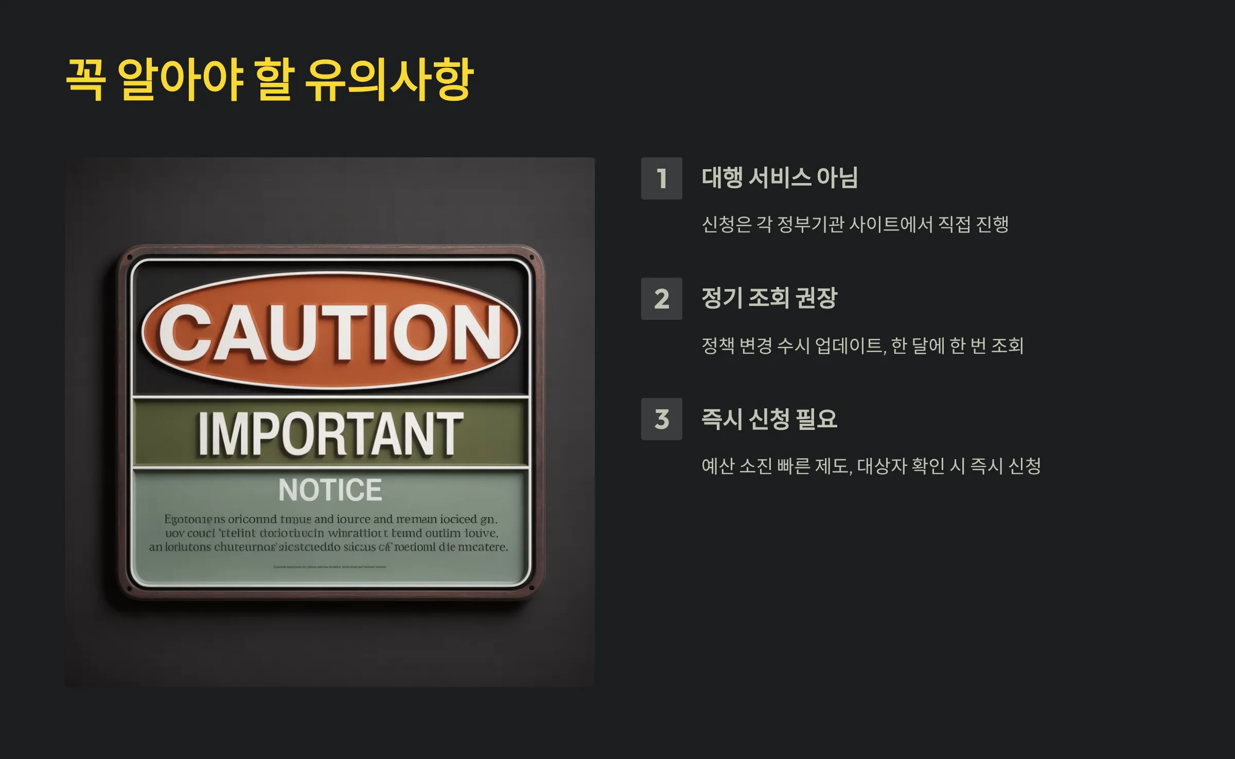 제도에 따라 중복 수급이 가능한 경우도 있으므로 안내문을 반드시 확인해야 합니다.