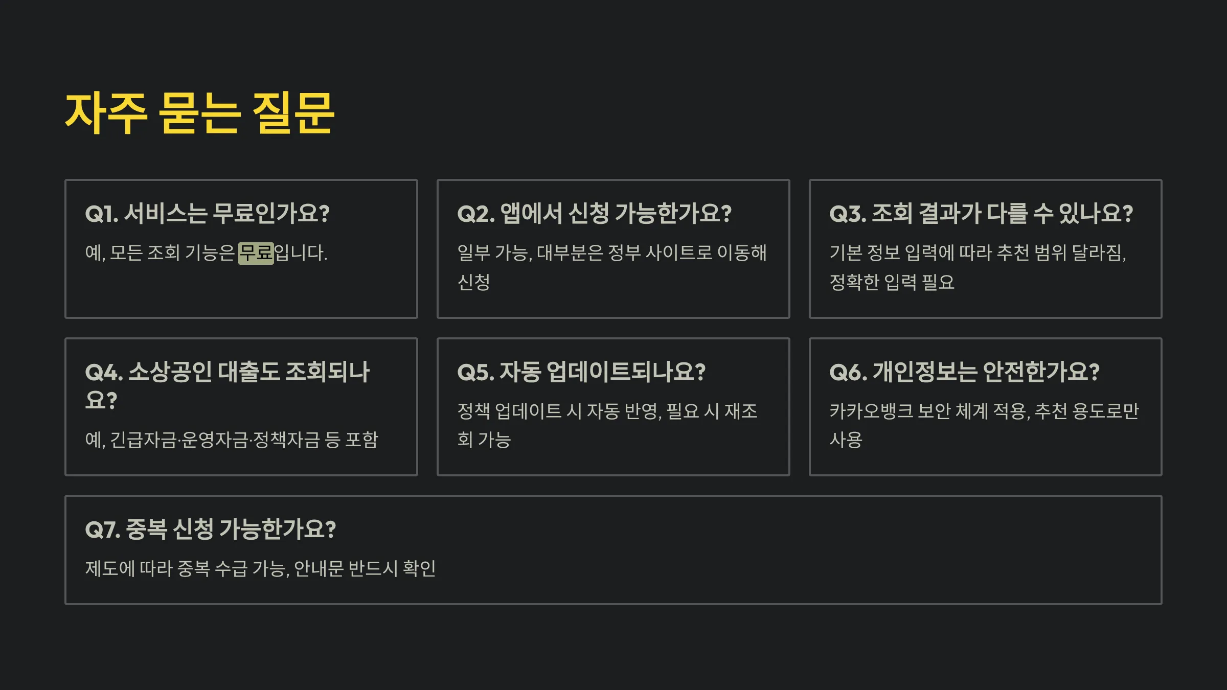 Q1. 카카오뱅크 정부지원금찾기 서비스는 무료인가요?
