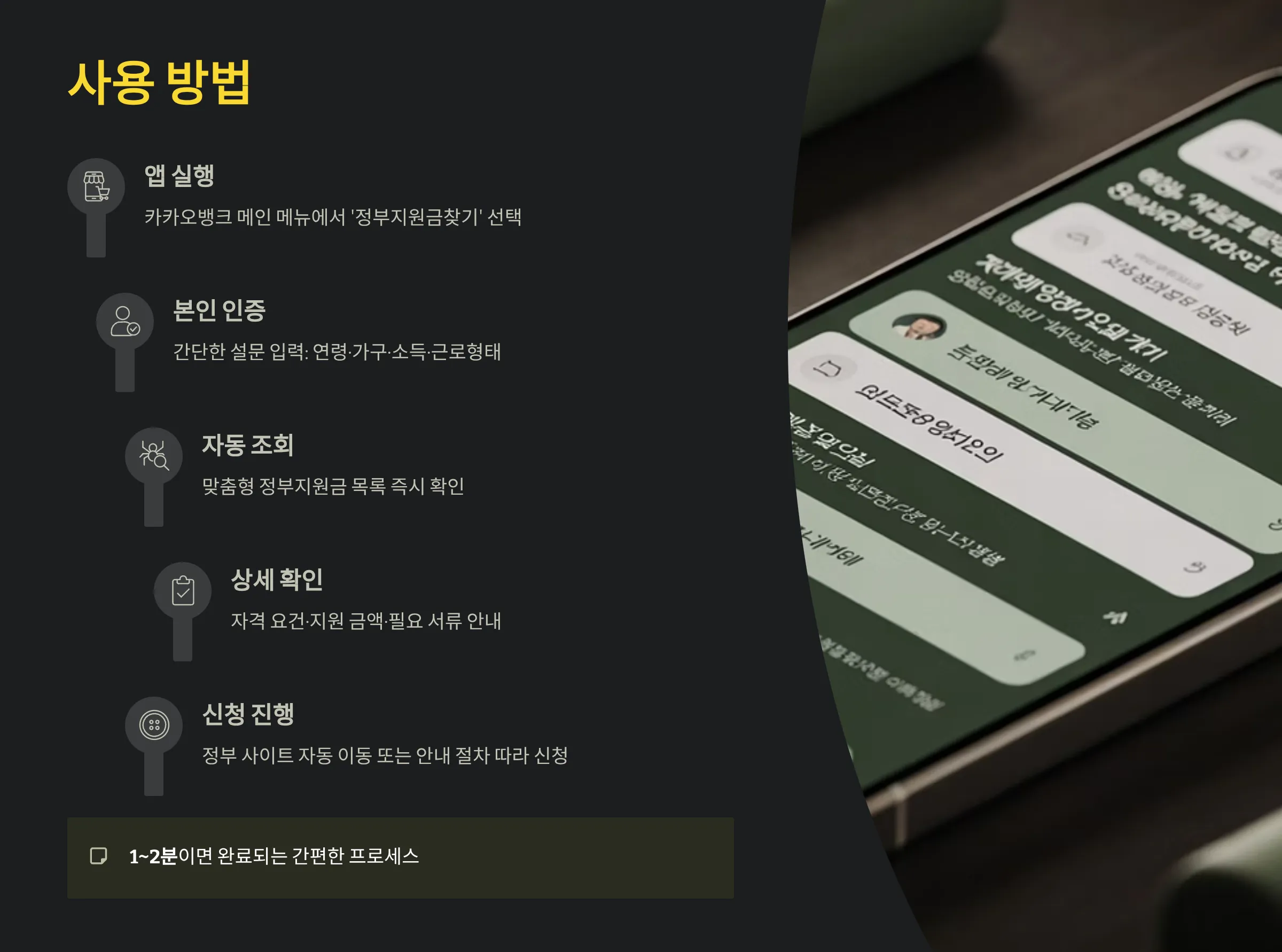1) 카카오뱅크 앱 실행 → 메인 메뉴에서 ‘정부지원금찾기’ 선택