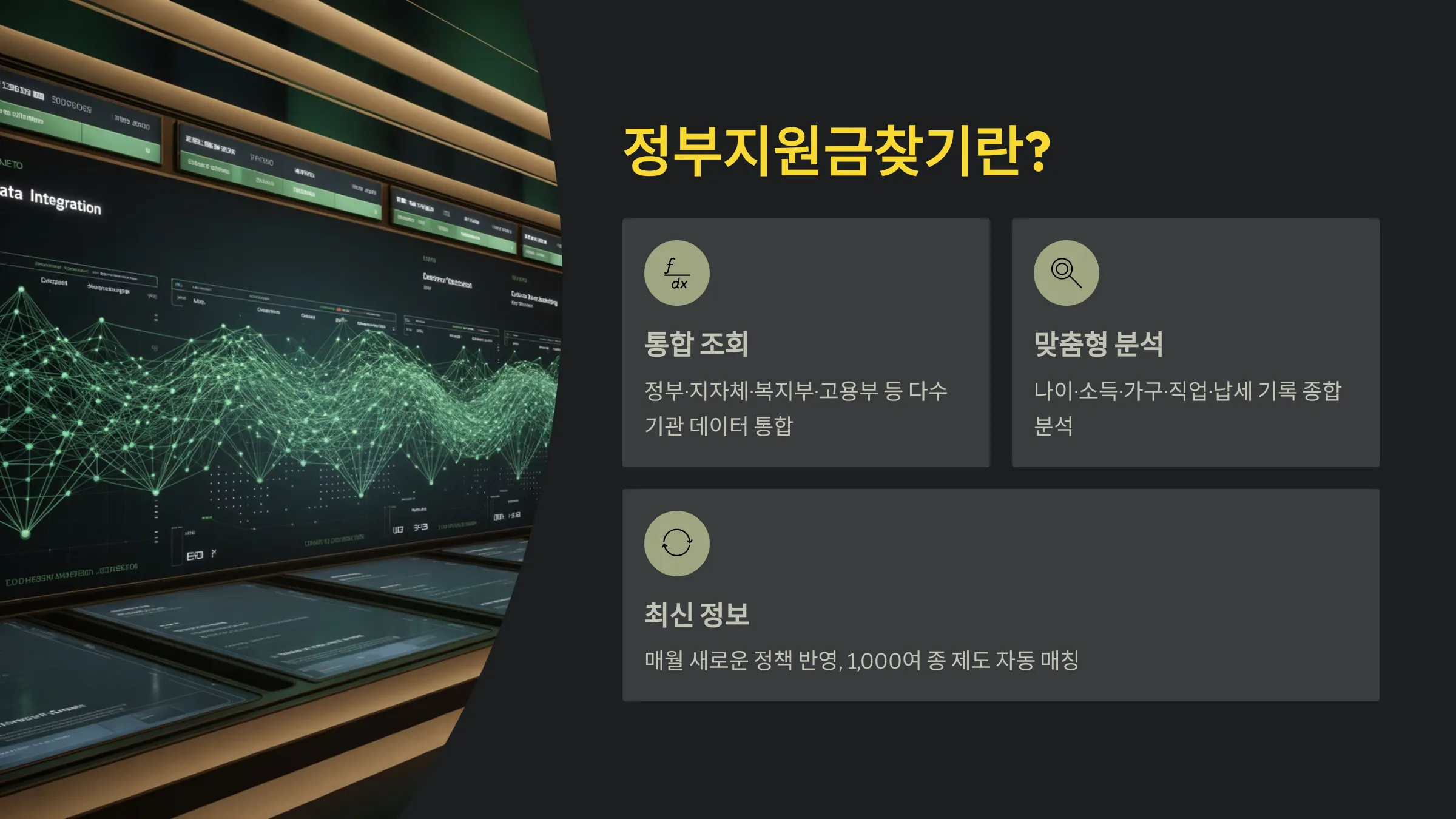 카카오뱅크 정부지원금찾기는 복잡한 정부 부처별 사이트 대신, 한 곳에서 지원금을 통합 조회할 수 있도록 제공되는 편의형 서비스입니다. 정부·지자체·복지부·고용부 등 다수 기관의 데이터를 기반으로, 나이·소득·가구 구성·직업·납세 기록 등을 종합 분석해 받을 수 있는 지원금을 자동 추천합니다. 특히 본인의 상황을 반영한 맞춤형 추천이 강점이며, 매월 새로운 정책 반영으로 최신 정보 제공이 가능합니다.