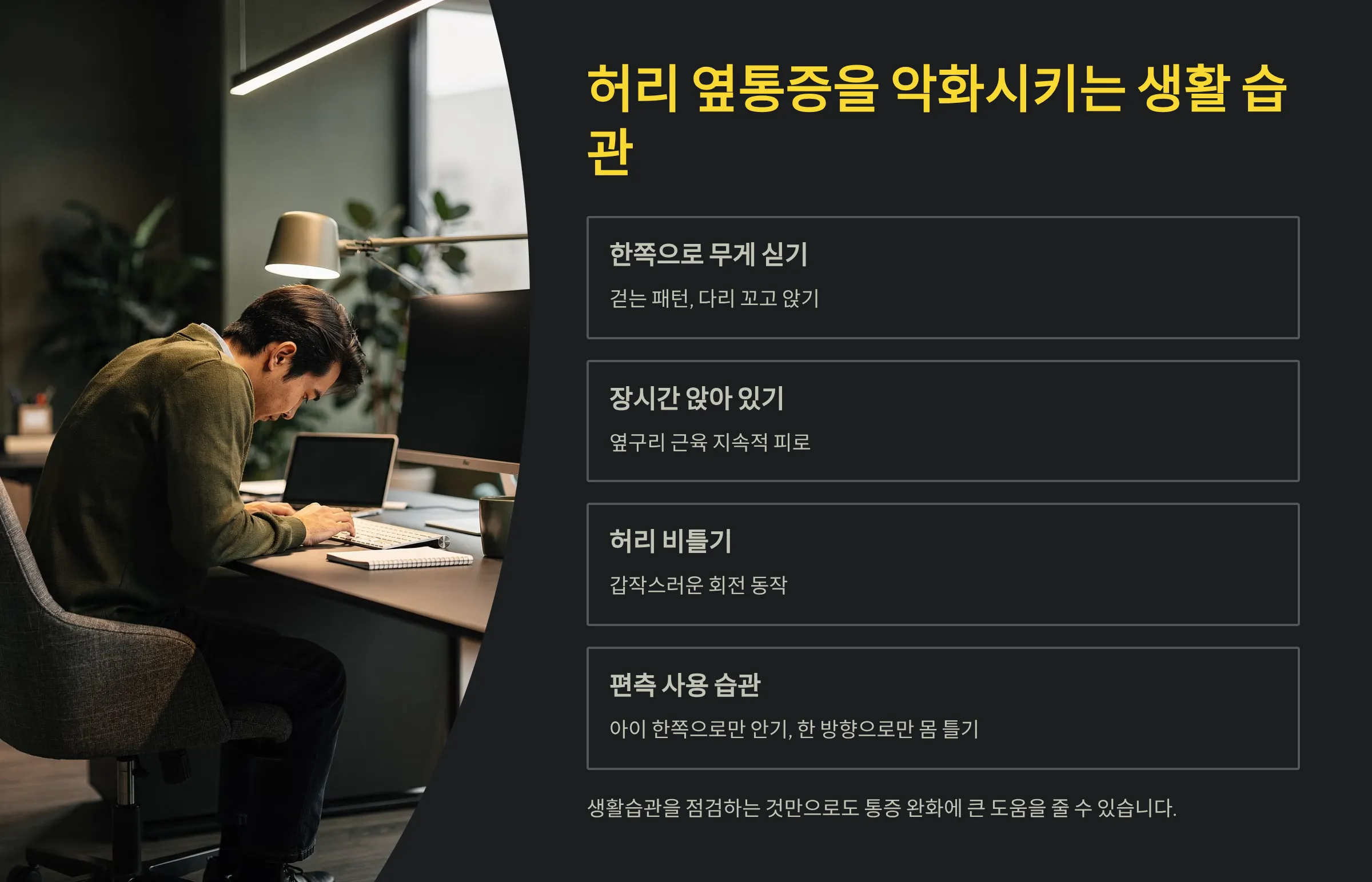 허리 옆통증을 악화시키는 생활 습관