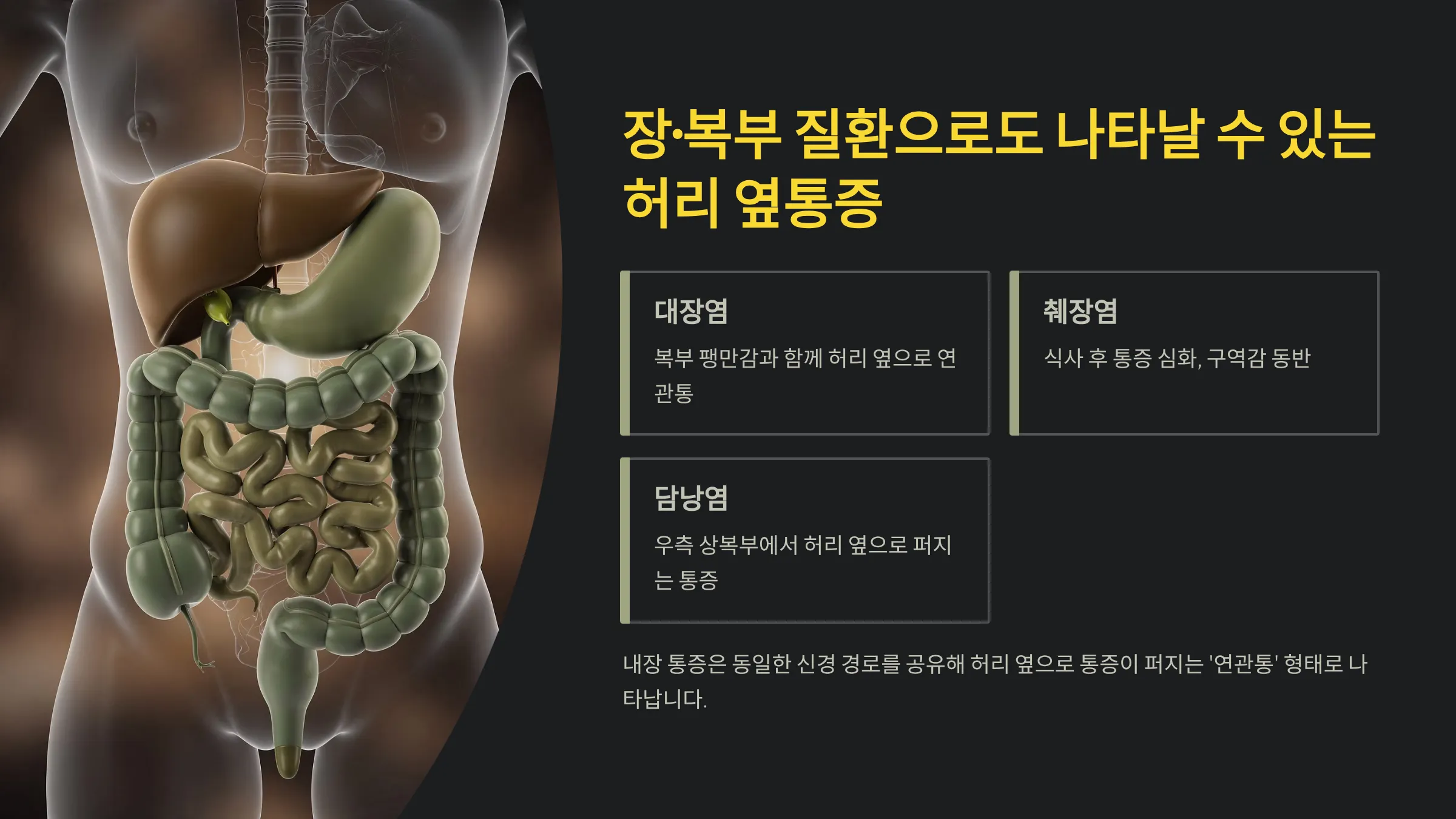 장·복부 질환으로도 나타날 수 있는 허리 옆통증
