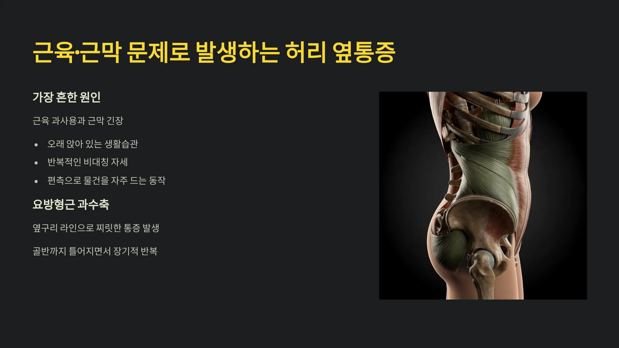 근육·근막 문제로 발생하는 허리 옆통증